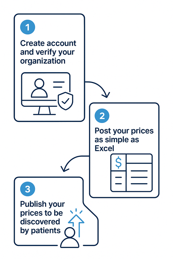 Publish your cash prices and connect with a broader population seeking care