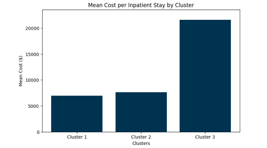 - Cluster 3 represented the most complex cases—patients undergoing pacemaker or defibrillator surgeries—with the highest average cost ($21,563) and largest variation, indicating significant financial risk for providers under a flat payment model.